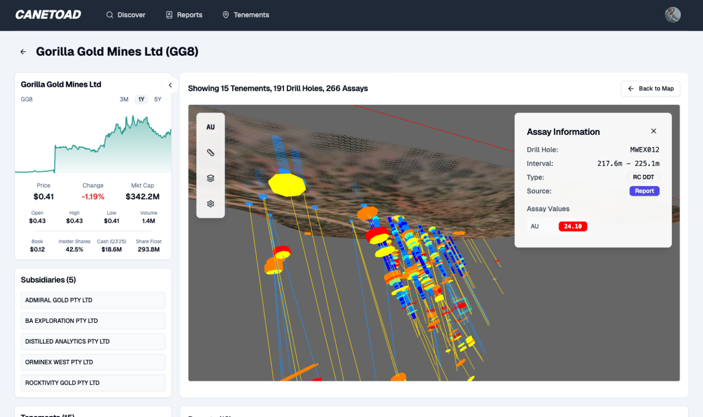 Interpret ASX mining announcements in minutes, not days. Canetoad transforms complex drill data into intuitive 3D visualizations, giving investors immediate spatial context and a competitive edge.